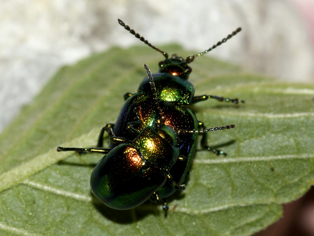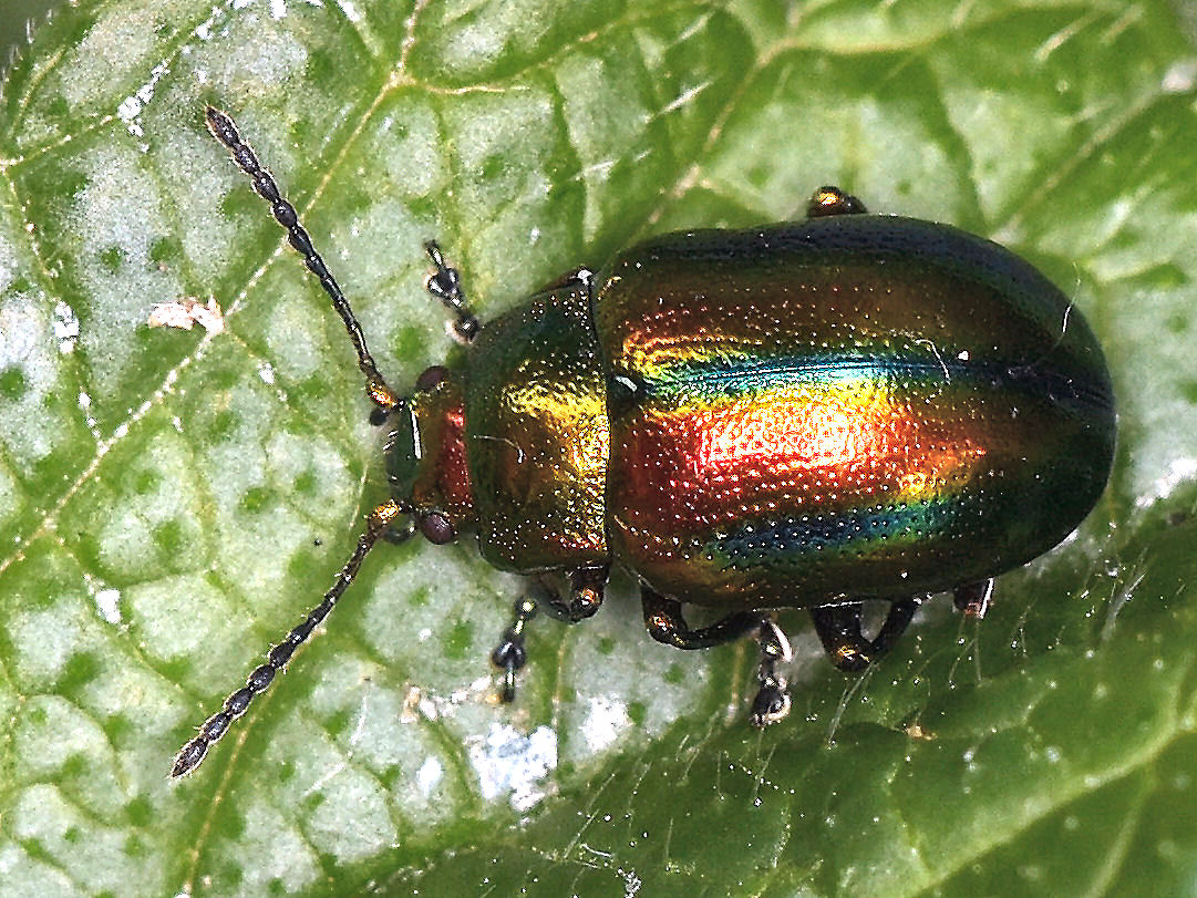 Chrysolina fastuosa (Scopoli, 1763) Ovaläugiger Blattkäfer, Prächtiger Blattkäfer, Goldglänzender Blattkäfer
