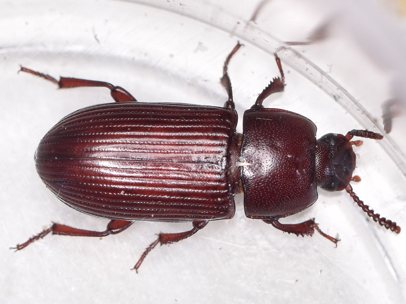 Käfer (Coleoptera) Familien Artenliste Fotos der Art - 46790 - Coleoptera Tenebrionidae Schwarzkäfer Uloma culinaris (Linnaeus, 1758) Roter Schwarzkäfer Imagines Jungfernheide (BE), 05.05.2010 M. Woelky   J. Esser Jungfernheide (BE), 16.05.2013 M. Woelky   J. Esser Jungfernheide (BE), L.F. 17.07.2015 O. Woelky   J. Esser Weißensee (BE), 09.07.2024 F. Hesse Erläuterungen der Abkürzungen
