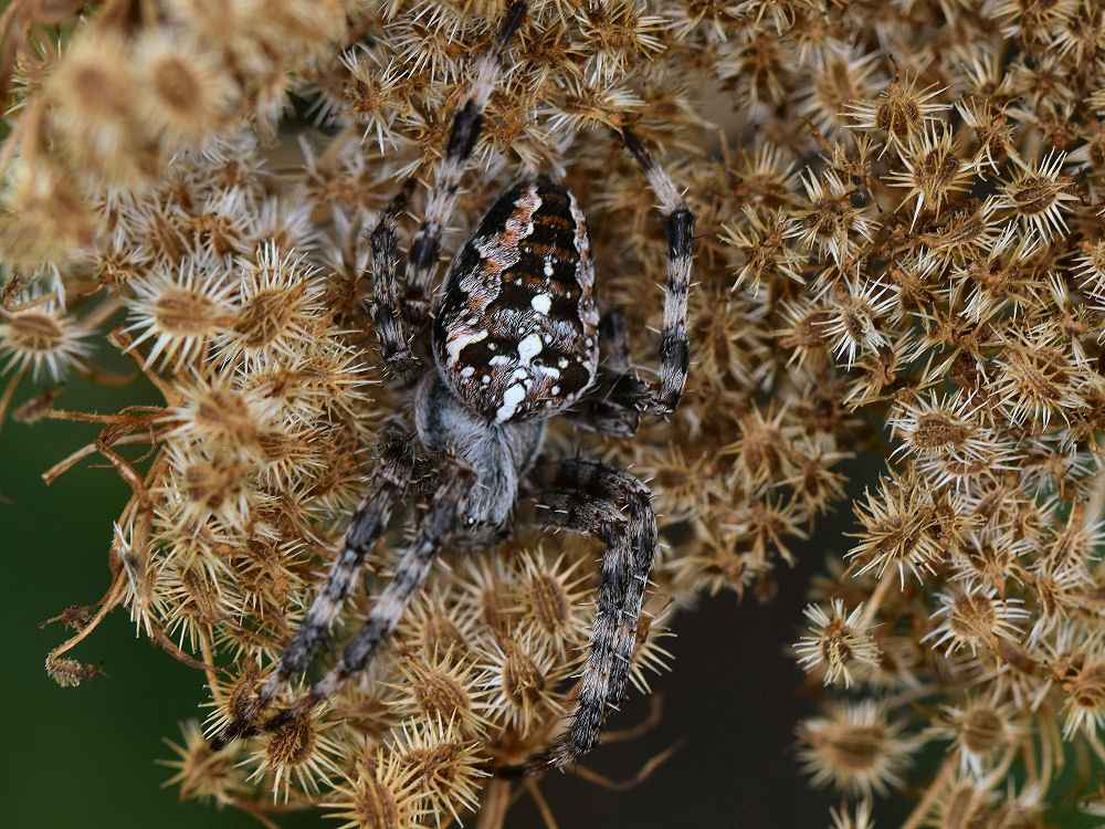 Spinnentiere (Arachnida) Familien Artenliste Fotos der Art - 00220 - Arachnida Araneidae Echte Radnetzspinnen Araneus diadematus Clerck, 1757 Gartenkreuzspinne Imagines♀ Gatow (BE), 03.10.2007 B. Schulze♀ Rübeland / Harz (ST), 13.09.2016 P. Rückheim Juvenil Weißensee (BE), 05.07.2015 F. Hesse♂ Weißensee (BE), 17.08.2020 F. Hesse♀ Weißensee (BE), 20.08.2020 F. Hesse♂♀Paarungsversuch Bad Belzig OT Groß Briesen (PM), 07.09.2009 Dr. C. Brückner♀Farbvariante, Bauchseite Berlin-Johannisthal (BE), 15.09.2009 Dr. C. Brückner♀ Lichtenrade (BE), 17.10.2022 H. Woelky♂mit Beute, Unterseite Schmogrow-Fehrow OT Saccasne (SPN), 15.08.2023 Dr. C. Brückner